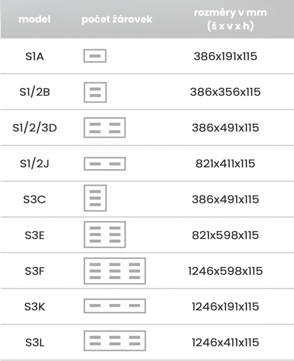 | Výkon zářiče: | 2 kW, 3 kW nebo 4 kW |